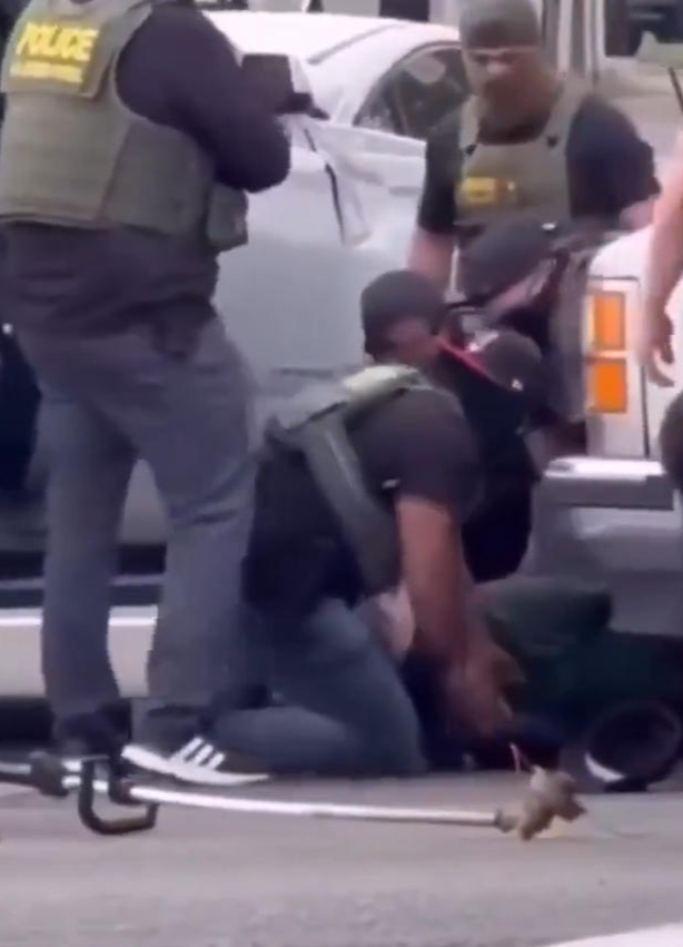 不過呢,有網友拍攝了整個過程,顯然美國國土安全部在撒謊。因為是蒙面特工先實施的暴力,而且特工並沒有先亮明身份,所以巴蘭科顯然是受到了驚嚇。被美國國土安全部當成襲擊特工證據的、所謂的巴蘭科揮舞除草機,也僅僅是巴蘭科無意識的躲避動作。
