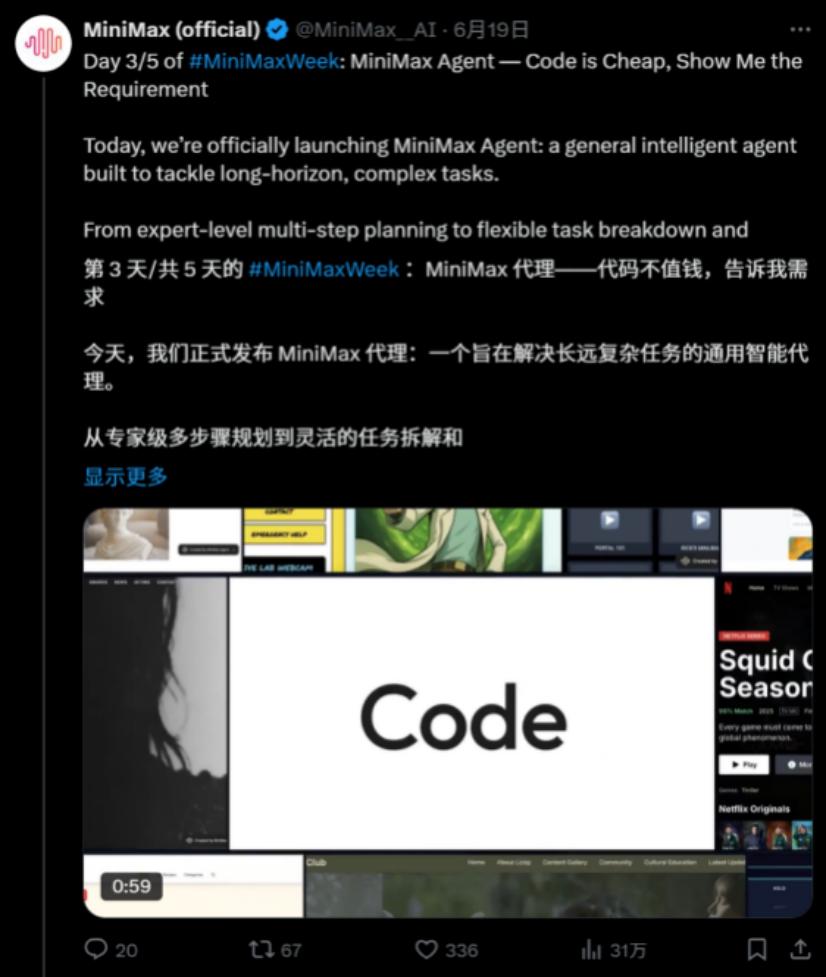 2025年,人工智能行業的風口從基礎大模型轉向了具身智能及Agent等應用領域,智譜、MiniMax、月之暗面、階躍星辰等也紛紛跟隨,在智譜之後,月之暗面和MiniMax均發佈通用Agent產品。