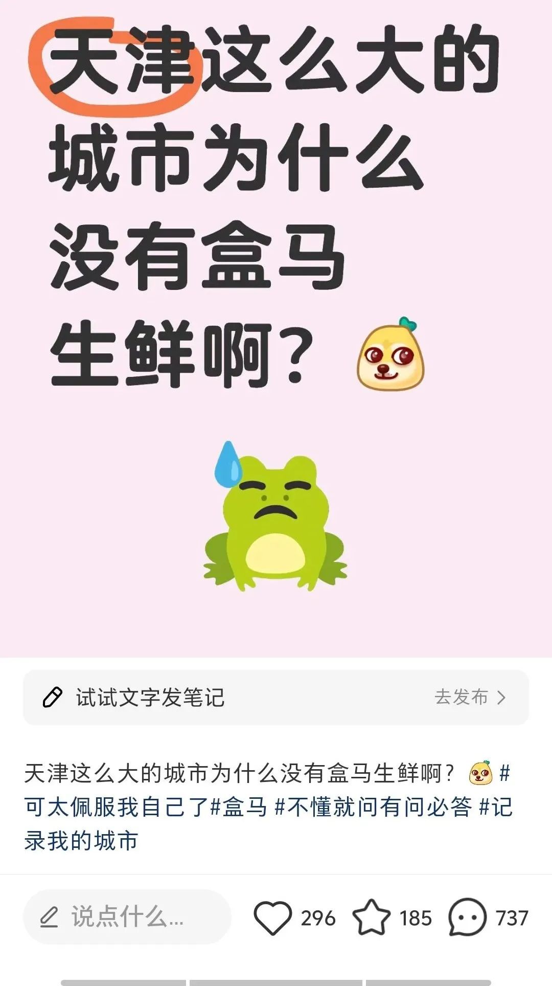 “天津這麼大的城市,為什麼沒有盒馬生鮮?”
