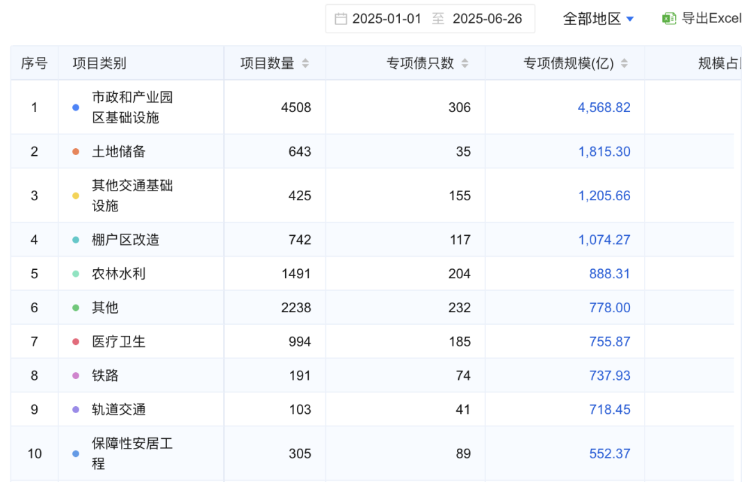 △今年以來專項債投向規模前十的項目類別,圖源:企業預警通