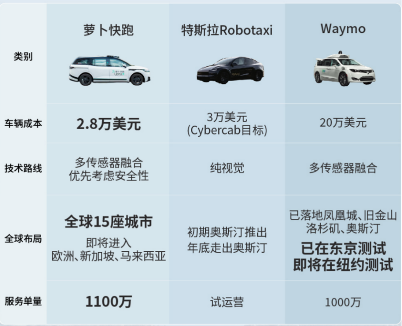 在全球無人駕駛的競爭中,來自中國的蘿蔔快跑無疑是具有領先優勢的,但Waymo、特斯拉等洋蘿蔔正虎視眈眈。