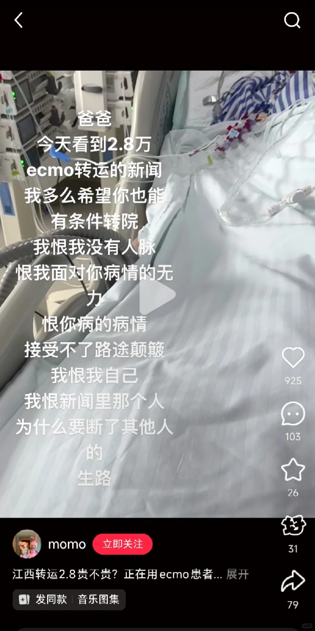 至於“為什麼轉運800多公里要花28000元”,醫院也不是很清楚。