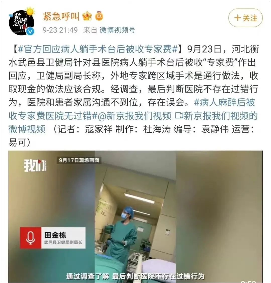 雖然官方這次認定,專家費收取合規,醫院沒有過錯,只是存在溝通問題。