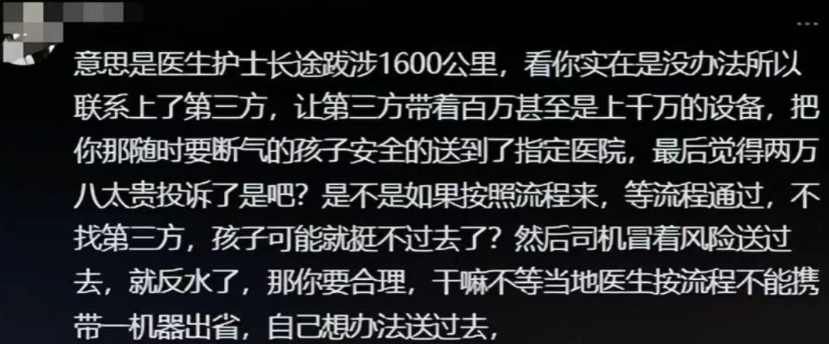 他們説,這是人命關天的事情啊。要不是司機冒着風險連夜開車,孩子命都不一定保得住,回頭又開始嫌價格貴了?