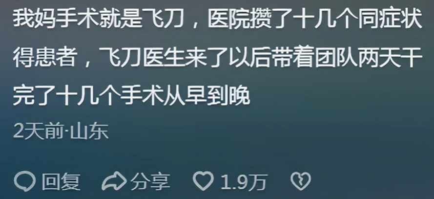 “飛刀醫生”省了患者來回奔波的麻煩,救了人的命,讓人能花小錢辦大事。