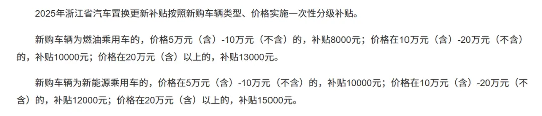 比如杭州的政策是按照購車價格和能源類型,給到 8000-15000 的補貼,這個政策不能和國補一起用,資金用完即止。