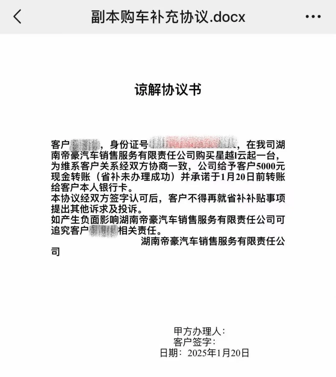 比如在去年 10 月,長沙一位陳女士準備購買星越 L ,吉利銷售告訴她可以通過 “ 操作 ” 再便宜 2000 塊,具體就是花 8000 塊錢讓人 “ 搞 ” 一本行駛證和一張二手車發票,拿着這個就能申請 1 萬的置換更新補貼。