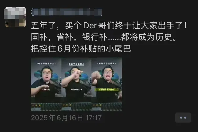 因為廠補金額不大,廠家睜隻眼閉隻眼,但這次國補、地補多達一兩萬塊錢,就沒這麼簡單。總之,為了杜絕此類行為,我估計各地的置換更新補貼政策會很快迭代一個新的方案。