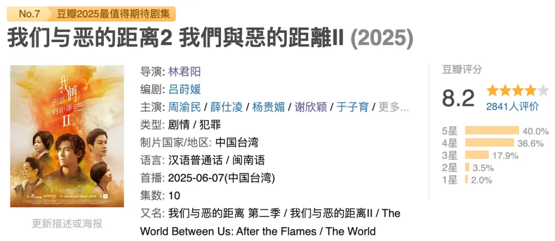 觀眾對續作翹首以待,把它推到了2025年最值得期待劇集No.7的位置。