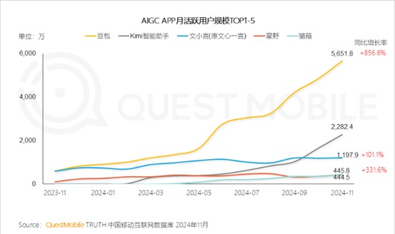 一來,伴隨AI技術的持續迭代,AI搜索賽道迎來競逐熱潮,多家新勢力的湧入正顯著擠壓百度的市場空間。國內市場,字節跳動的“豆包”、月之暗面的“Kimi”等AI搜索產品快速崛起,用户規模持續擴張。據QuestMobile數據,截至2024年11月底,字節跳動旗下的豆包月活用户數達到5600萬左右;Kimi智能助手11月份的月活達到2200萬左右。