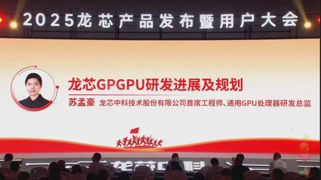 會上,龍芯中科技術股份有限公司首席工程師、通用GPU處理器研發總監蘇孟豪以龍芯GPGPU研發進展及規劃為主旨,展開演講。