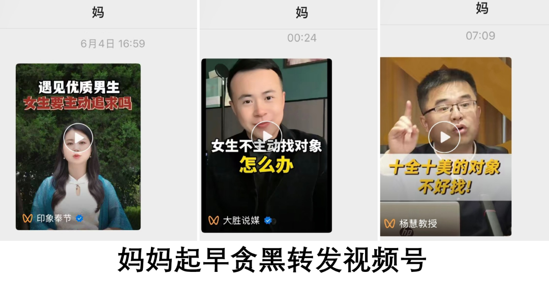 坦白説,在微信視頻號出來之前,父母們就算想催,也沒有什麼理論依據。但視頻號火熱起來後,爹媽們彷彿找到了知音和嘴替