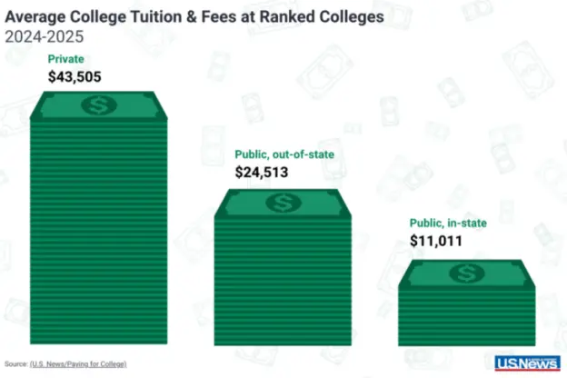 ◆美國高校普遍收取高昂學費,私立大學尤甚。來源:US News