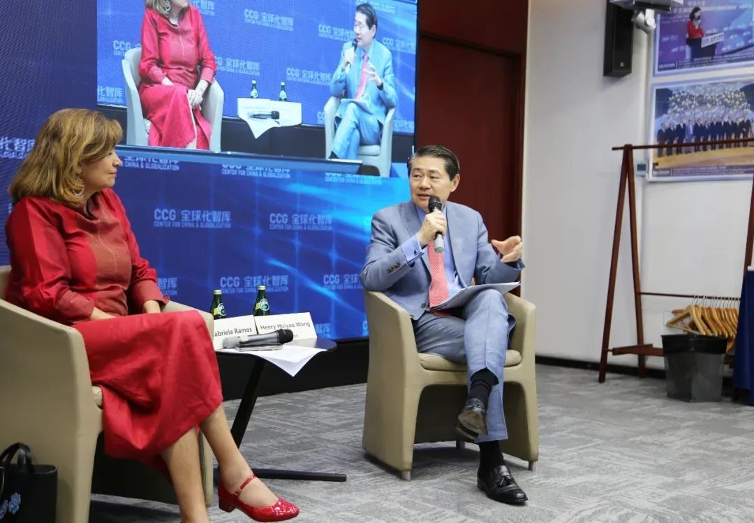 **CCG理事長、國務院原參事王輝耀:**今天我們在座嘉賓中有來自中國政法大學數據法治研究院的張凌寒教授,中國科學院研究員、人工智能安全與超級對齊北京市重點實驗室主任、聯合國人工智能高層顧問機構專家曾毅,以及多位大使館官員,還有來自智庫和媒體界的眾多專家朋友。拉莫斯女士,您剛才發表了一場極具深度和啓發性的演講,全面闡述了您對全球治理的看法,分享了關於人工智能發展方向及其重要意義與貢獻的思考。