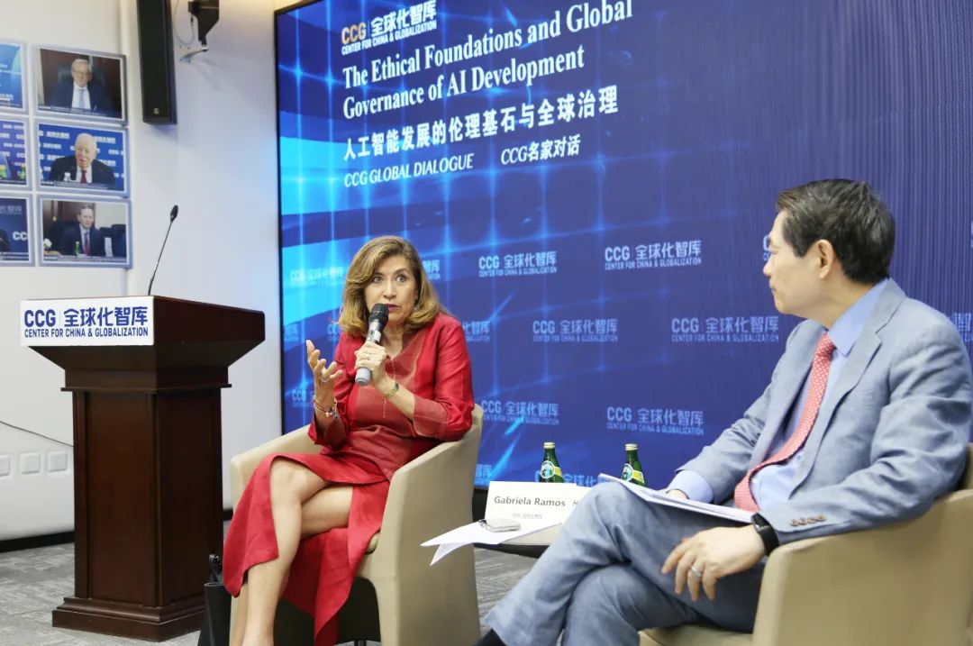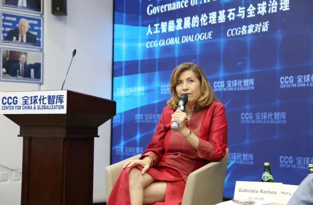 2025年6月16日,聯合國教科文組織助理總幹事加布裏埃拉·拉莫斯(Gabriela Ramos)到訪全球化智庫(CCG),並與CCG理事長、國務院原參事王輝耀博士圍繞人工智能發展的倫理基石與全球治理這一熱點話題對話交流。以下為對話全文: