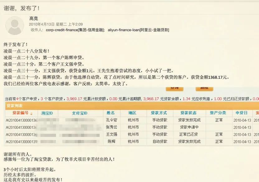 兩年前,他帶着一幫年輕人通宵肝系統,大家説好了要從阿里小貸拓展出去,服務更多普通人。
