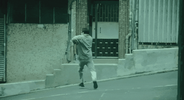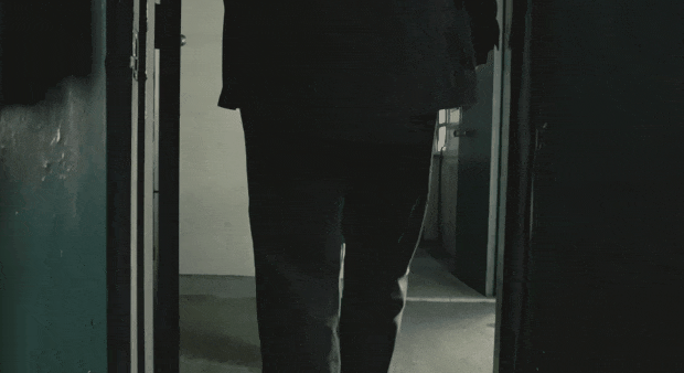 他選擇了使用不帶斯坦尼康穩定器的廣角鏡頭來拍攝這個畫面,這一方面似的鏡頭有些許的不穩定感,增強了略帶恐慌的心理暗示,也使得畫面更顯空闊,給角色增添了些許無助感。