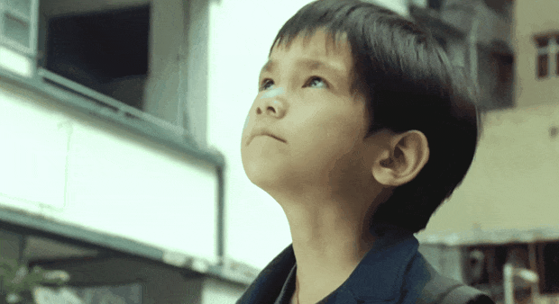 比如一開場,小男孩看到於輝時,他一言不發,只怔怔地抱着盒子做自己的事。