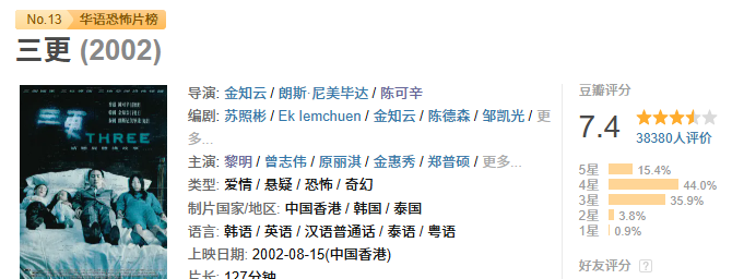 而這樣的評分,還是在這是一部三段式的合集,而其他兩部(來自韓國與泰國的導演)拖了陳可辛後腿的情況下發生的。