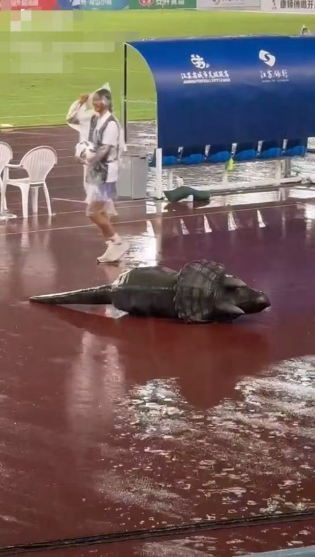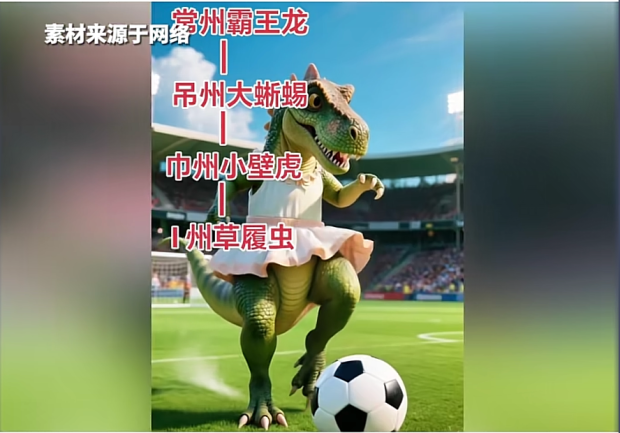 上週在常州對南京的比賽中,賽前的歡迎儀式直接變成了侏羅紀巡禮,常州直接把恐龍搬進了體育場裏: