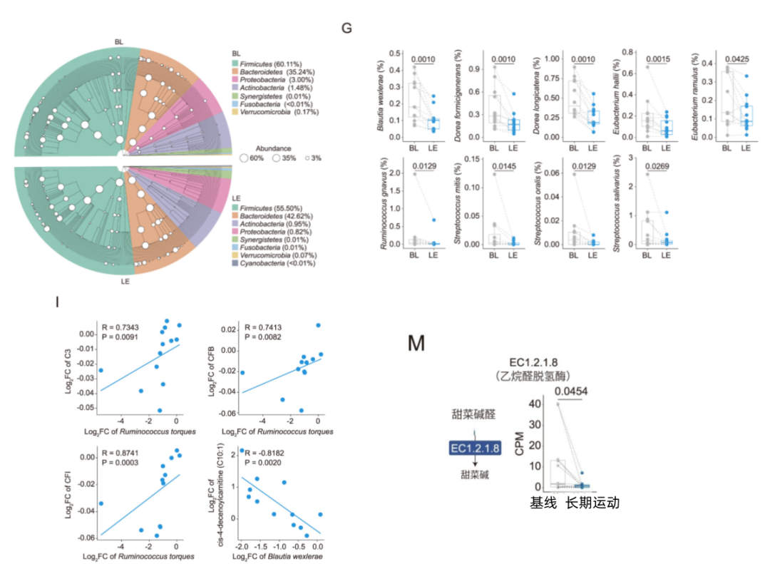 圖注:長期運動後,血漿中甜菜鹼顯著升高,腎臟中甜菜鹼合成相關基因和關鍵酶CHDH的表達上調