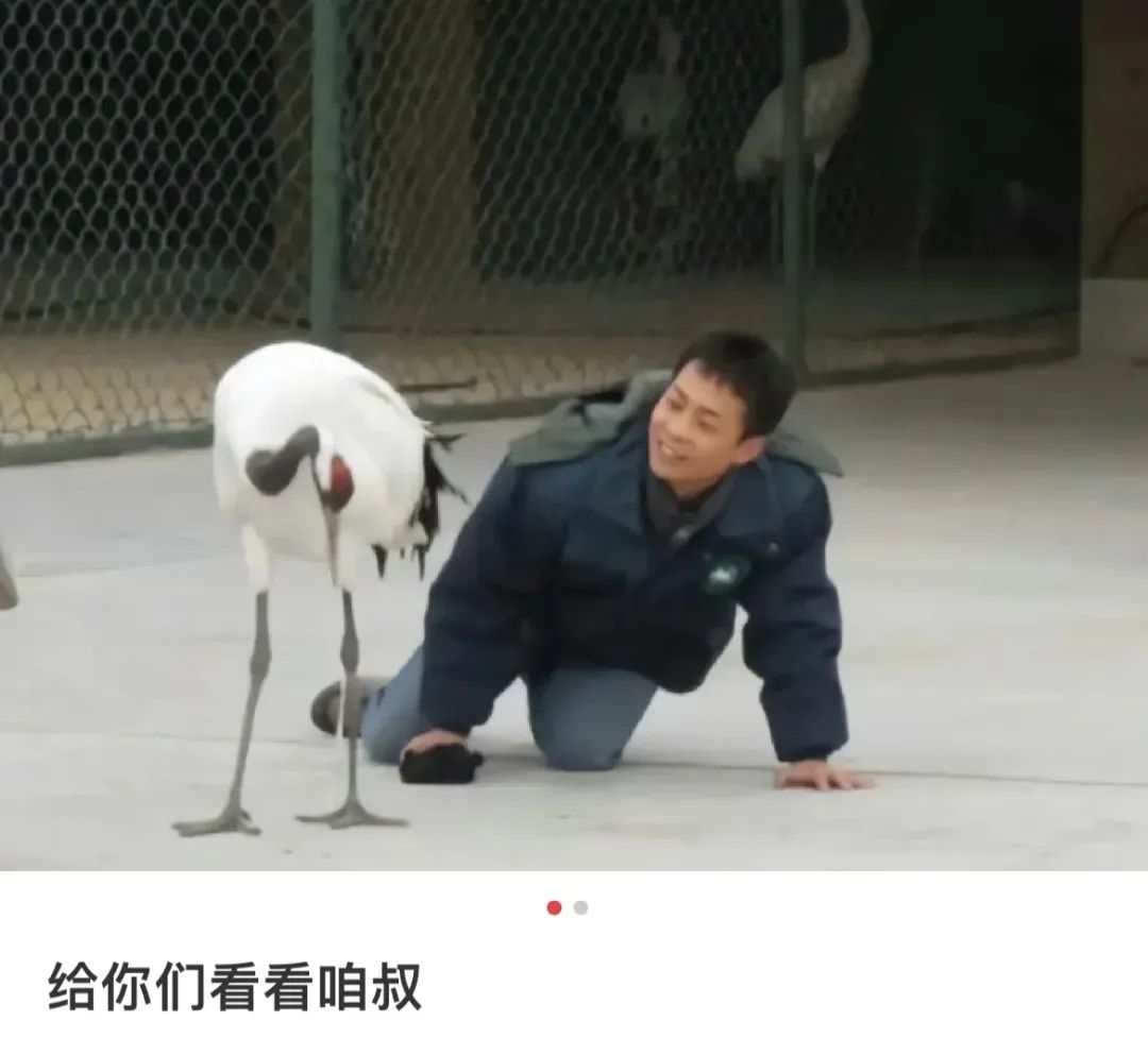 他瞅個鶴,直接雙膝跪地,面帶傻傻的微笑,彷彿“地主家的傻兒子”第一次出來見世面。