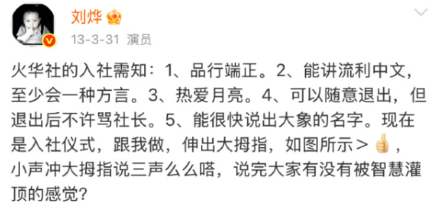 他還將自己的名字“燁”字拆開,組建“火華社”,極力拉攏粉絲加入,而自己擔任社長。