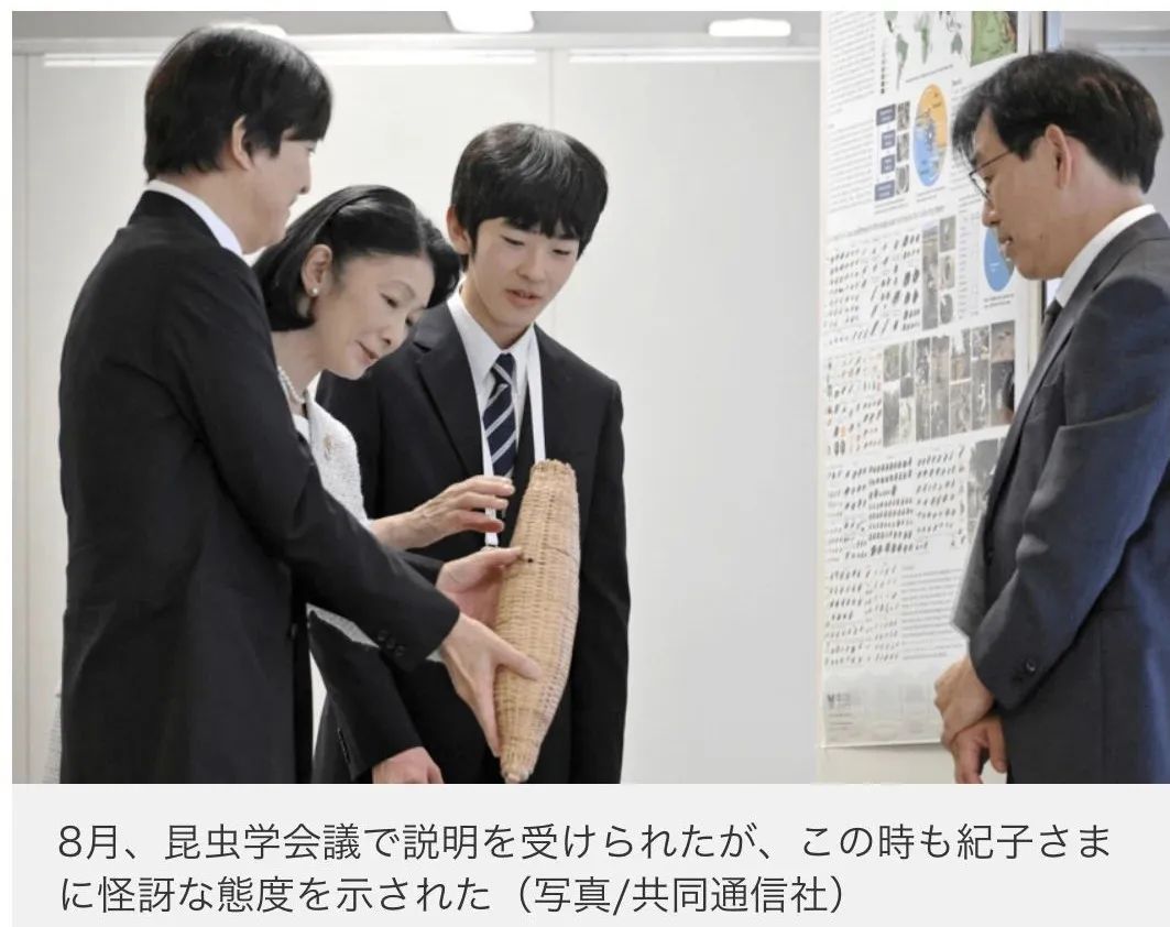 同年8月,在京都召開的“國際昆蟲學會會議”上,當紀子妃靠近講解時,悠仁也明顯表現出迴避身體接觸的動作。