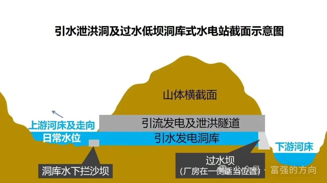 在長嶺坡開挖一條長約1400米的大洞徑隧道,同樣修建過水低壩洞庫式水電站。