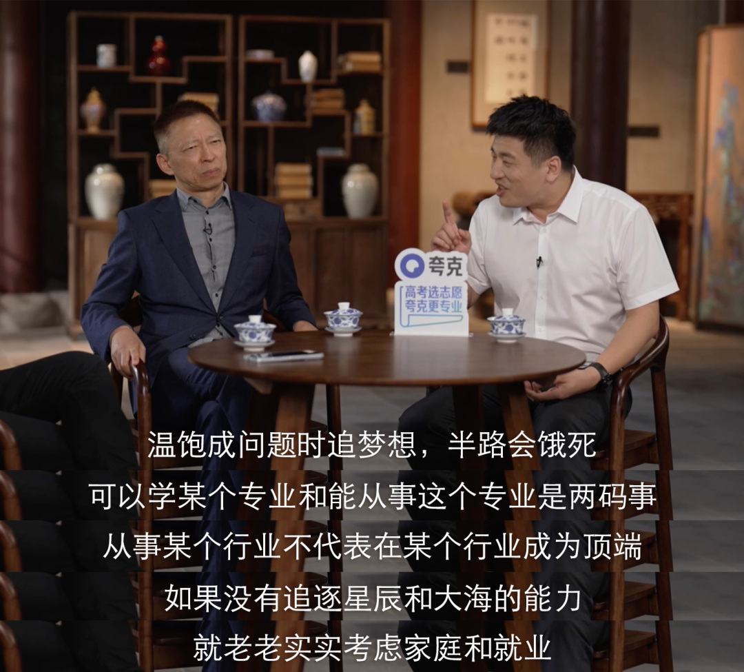 他表示,可以學某個專業和能從事這個專業是兩碼事,從事某個行業不代表在某個行業成為頂端。若沒有追逐星辰和大海的能力,就老老實實考慮家庭和就業。