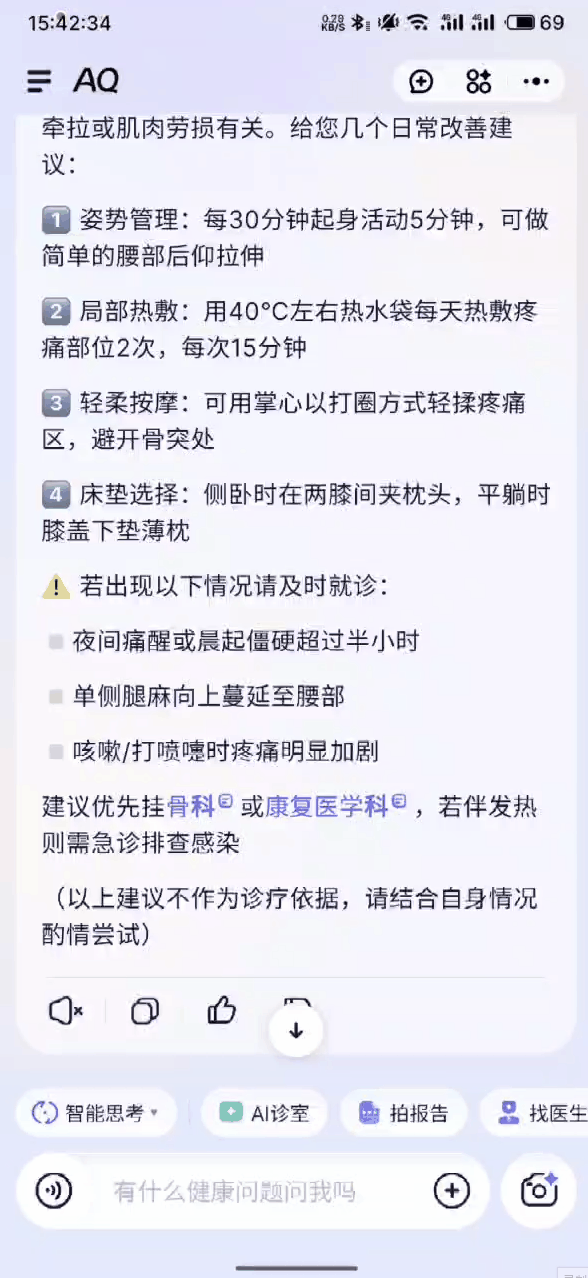 當然需要提醒:AQ這樣的應用能給你提供參考和建議,幫你搞清楚狀況,但最終診斷和治療還得聽真醫生的。AI工具的價值,是讓你更好地瞭解自己的身體,更安心,看病尋醫或管健康都更有的放矢。