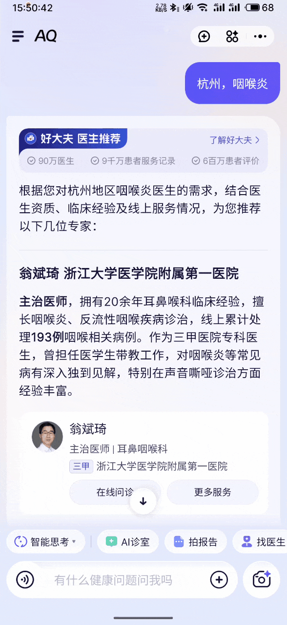 誒,那要是我越看越慌,非得找個真人醫生看看呢?AQ在這塊也是行家。