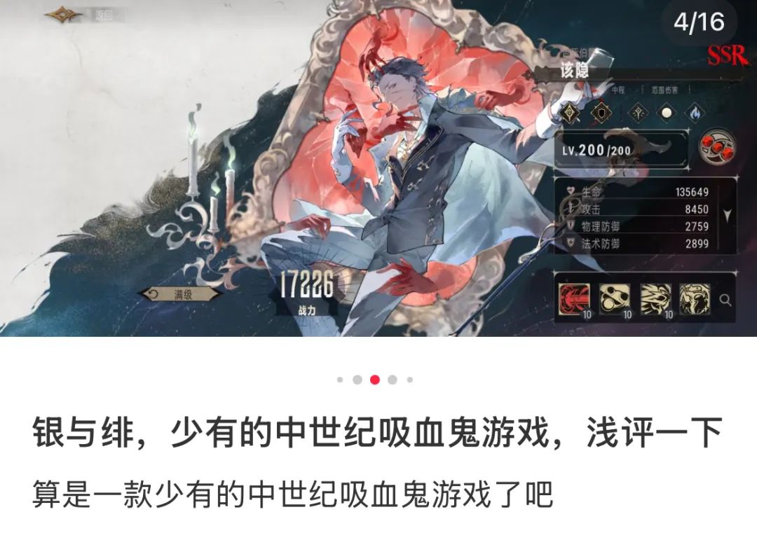 換句話説,“吸血鬼”並不是當下流行的題材,但卻始終是一種經典題材,載着玩家對舊時代浪漫的集體記憶,如今這樣風格的作品已經在市場上沉寂太久,《銀與緋》捕捉的正是這種始終存在、但卻長期未被回應的審美期待,這也是遊戲在公測之初便獲得廣泛關注的原因。