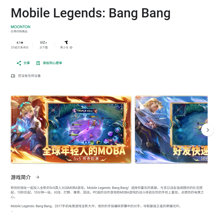 MLBB長期位列Google Play和App Store暢銷榜前列