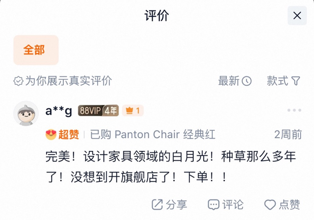 圖説:Vitra天貓旗艦店商品頁面用户評價