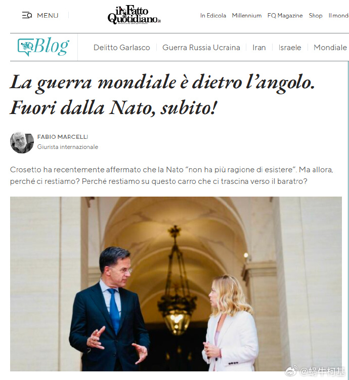 北約正引領走向第三次世界大戰的災難性開端,意大利應該退出北約。