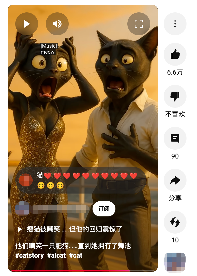 這也是為什麼,AI貓短劇的爆火,遠不只是一次“喵喵梗文化”的勝利,這背後藏着一整套內容工業的轉向:內容門檻越來越低,製作工具越來越豐富,流量打法越來越清晰——找一個高情緒觸發、低文化門檻、具備視覺沉浸感的載體,貓剛好是最完美的實驗品。