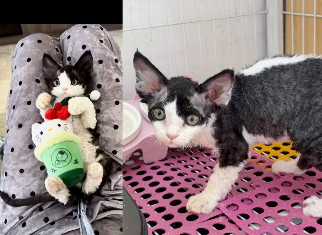 一位網友花20000元重金購入一隻德文,左邊是賣家秀,右邊是買家秀,賣家原本開價22000,好心抹掉的2000零頭,應該就是這隻貓的真實身價。