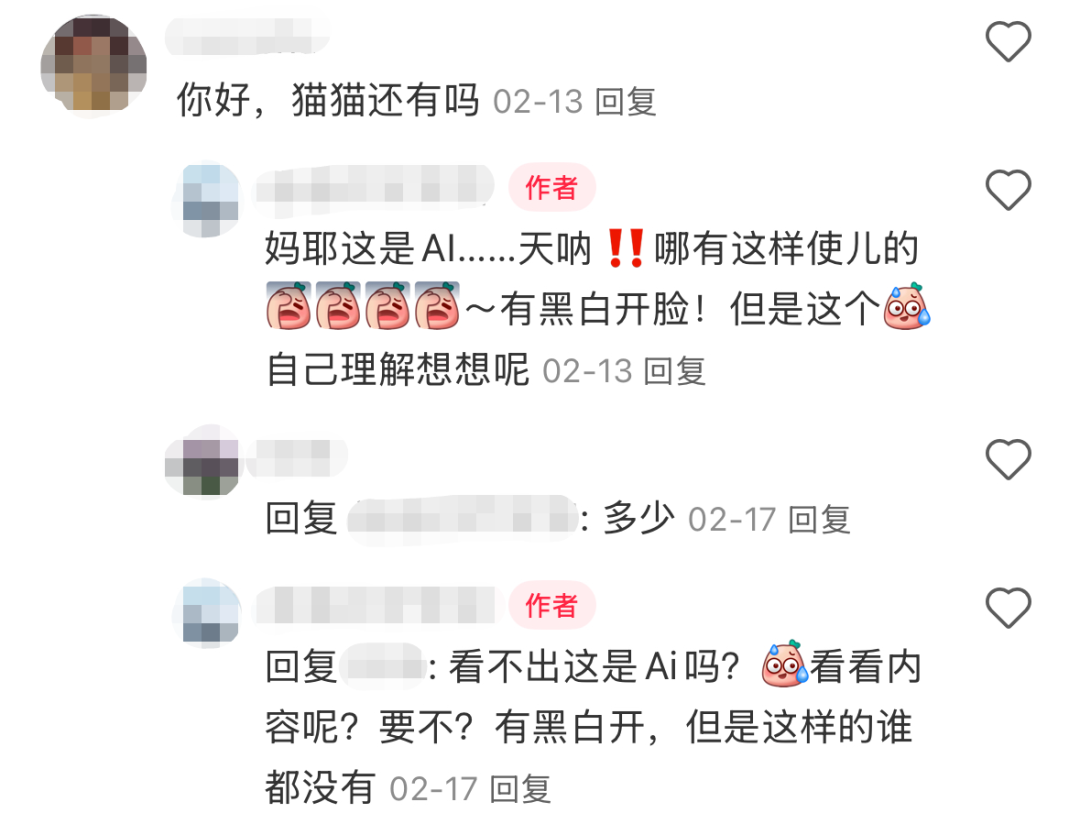 但買家是壓根不看字,科普了半天,“你好,貓貓還有嗎”“這是AI!”。
