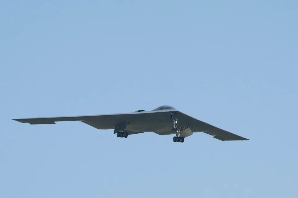 美國空軍一架B-2隱形轟炸機在執行完行動後返回美國密蘇里州懷特曼空軍基地。(圖源:路透)