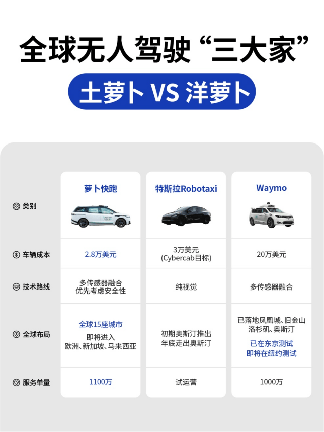 發令槍響,特斯拉之外,蘿蔔快跑、Waymo的表現更加可圈可點。
