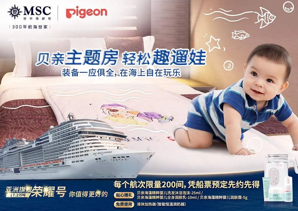 MSC榮耀號還和國際母嬰用品專家貝親合作打造了貝親主題房,向有需求的親子家庭免費提供MSC地中海郵輪與貝親精心挑選的母嬰產品。