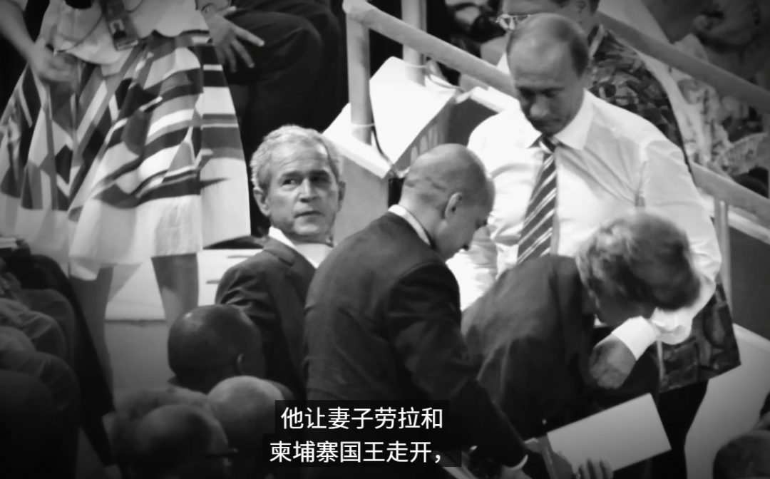 果然在8月8號京奧開幕這天,普布兩人的心思根本不在下面的開幕式表演,演出開始後不久,小布什就告訴老婆勞拉,和隔在中間的柬埔寨國王走開,他要與普京“談一談”