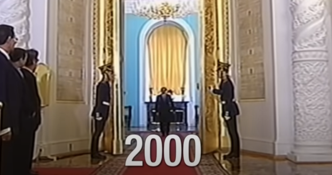 2000年,一道金色大門打開,普京從中緩緩走出,俄羅斯正式進入了普京時代,從普京擔任總統的第一天起,他的目標就是恢復俄羅斯舊日的帝國時光,就是要讓“俄羅斯再次偉大”