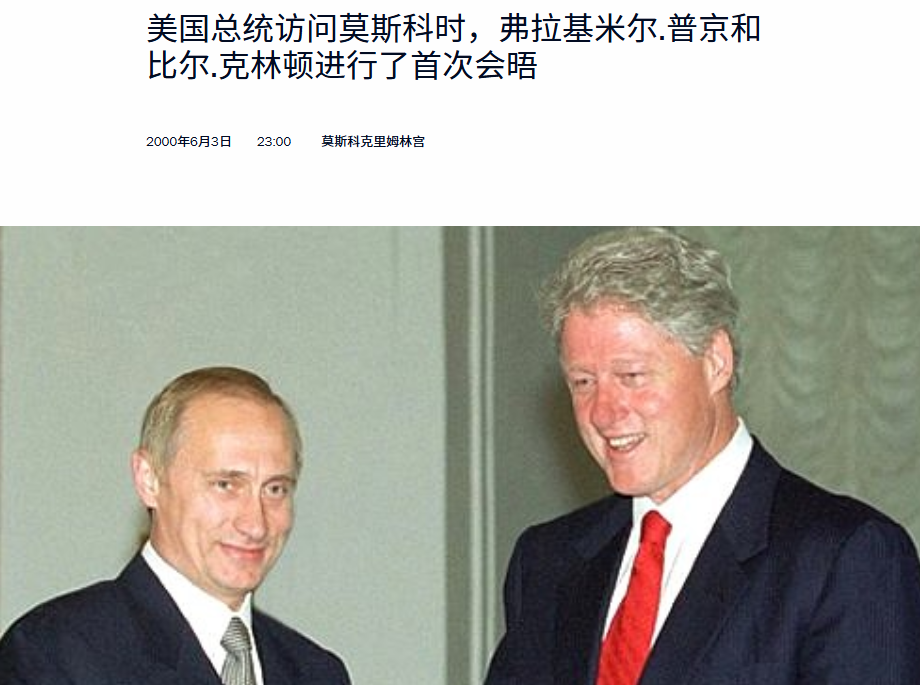2000年6月美國總統克林頓就到訪莫斯科與普京會面,根據美國官方的內部資料透露,克林頓政府急於瞭解這位俄國新總統,將如何處理美俄關係