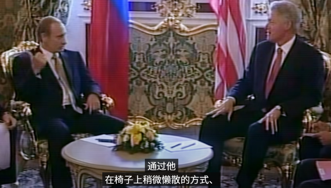 比如普京總是張開着腿,用大拇指比劃來比劃去,還用一種慵懶的方式來面對拘謹的克林頓