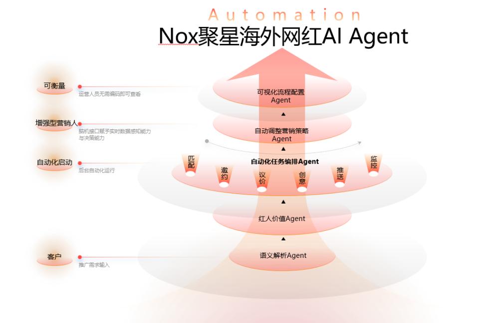 探索永不止境,Nox聚星一直在錘鍊超級營銷Agent的能力,讓技術最終服務於客户,滿足用户需求,實現用户目標,Nox聚星堅持與客户一起成功,與行業一起進步,一起推動海外紅人營銷自動化來臨!