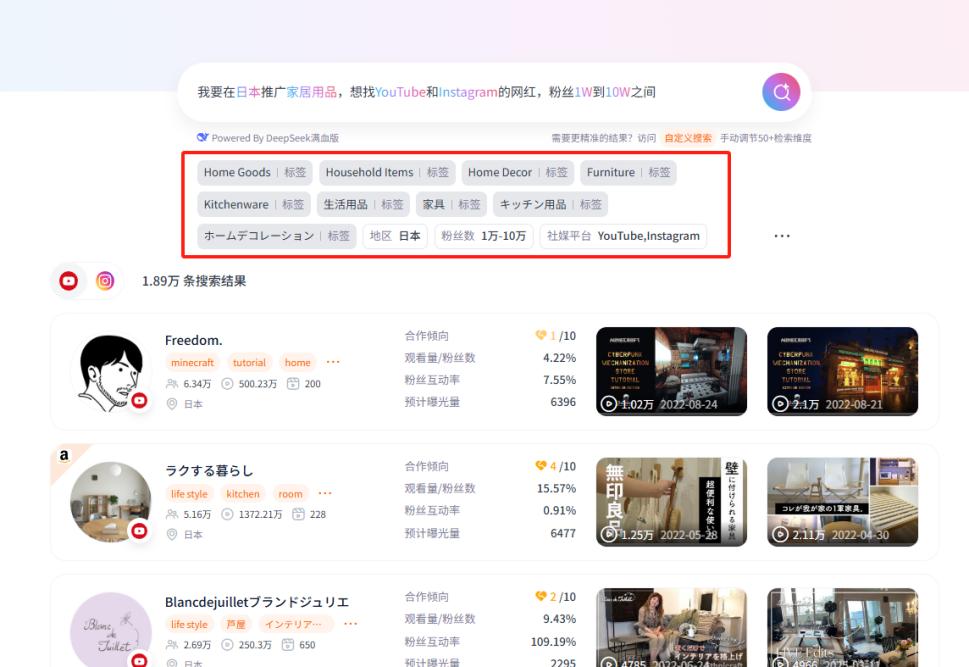而回歸8年前,海外紅人營銷還停留在手動搜索和篩選網紅的人效大戰中。這一過程繁瑣且耗時,品牌需要多平台逐一搜索、評估網紅的影響力、受眾特徵和互動率,100%依靠執行人員的經驗才能找到合適的合作對象。然而,隨着社交媒體平台的迅猛發展和用户行為數據的不斷積累,這種傳統的搜索方式顯得愈發低效。品牌亟需一種更高效、更系統的解決方案來應對日益複雜的市場環境。