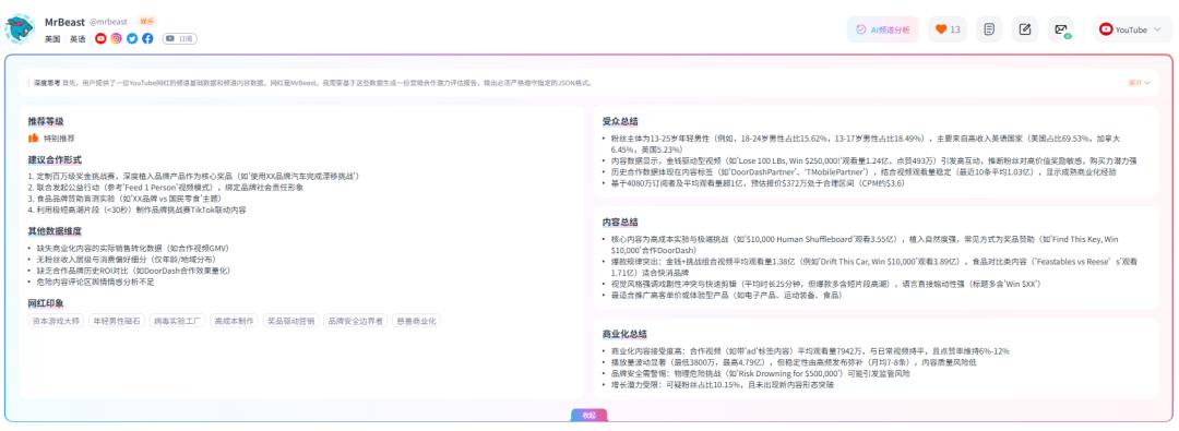2. 全球紅人拓撲建模:深度學習模型即時分析1億+紅人數據,以納米級精度解構每一個網紅的質量與營銷價值;