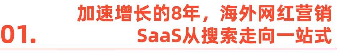 海外網紅營銷SaaS逐步從最初的搜索導向工具轉變為海外網紅搜索、海外網紅數據分析、海外網紅邀約、海外網紅管理、海外網紅內容監控、數據歸因管理等一站式的企業級服務。